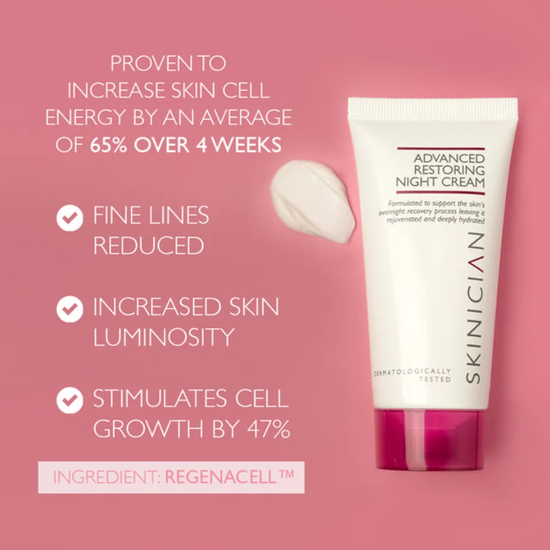 “A hydrating night cream should be part of everyone’s skin care regime, as our skin is prone to dryness during the night. We developed this as an ATP cream, designed to work alongside your skin’s natural circadian rhythm so it can thoroughly repair, rejuvenate, nourish and hydrate the skin while you sleep. It’s an overnight facial in a jar!”- Hilary McMurray, Co-Founder SKINICIAN